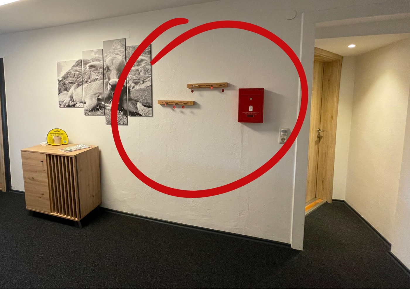 👉🏽 Schlüssel hängt am Schlüsselbrett oben links von der Treppe